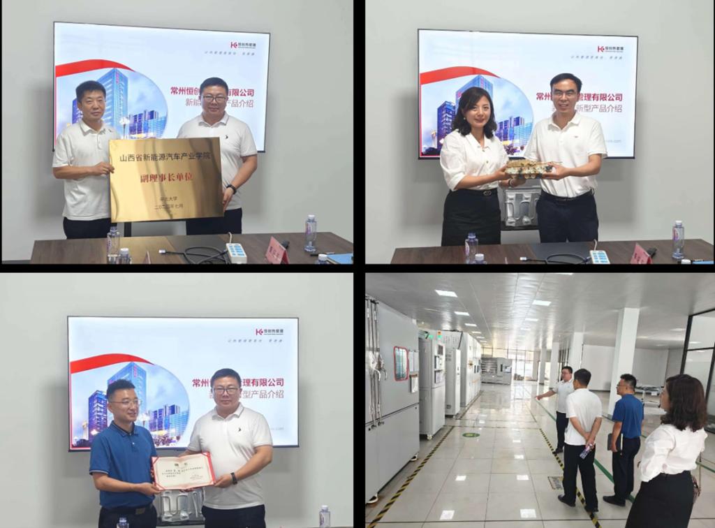 7月22日下午,调研组一行赴常州恒创热管理系统股份有限公司座谈交流。公司研究院院长、电池热管理产品线总经理李刚对胡向明书记一行的到来表示热烈欢迎,并介绍了公司基本情况和主营业务。胡向明书记、任雁副书记、李晓杰副院长分别就学校、学生就业和新能源汽车产业学院进行了介绍。双方就双师互聘、实习实训、成果转化、项目合作、共建实验室等新能源汽车产业学院高质量建设内涵进行了深入交流。