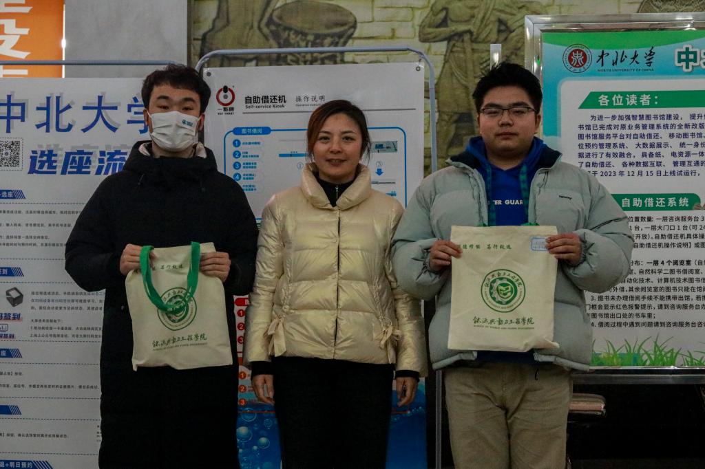 在图书馆大厅为正在考研冲刺的大四同学们发放了考研暖心包。院党委书记胡向明、院党委副书记兼副院长任雁、辅导员李涛以及部分毕业班班主任参与了本次活动。