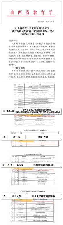近日,山西省教育厅公布了2025年度山西省高校思想政治工作质量提升综合改革与精品建设项目立项评选结果。我院组织申报的4项思想政治工作项目获得立项支持,数量居各学院前列。