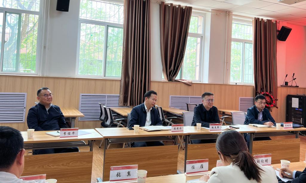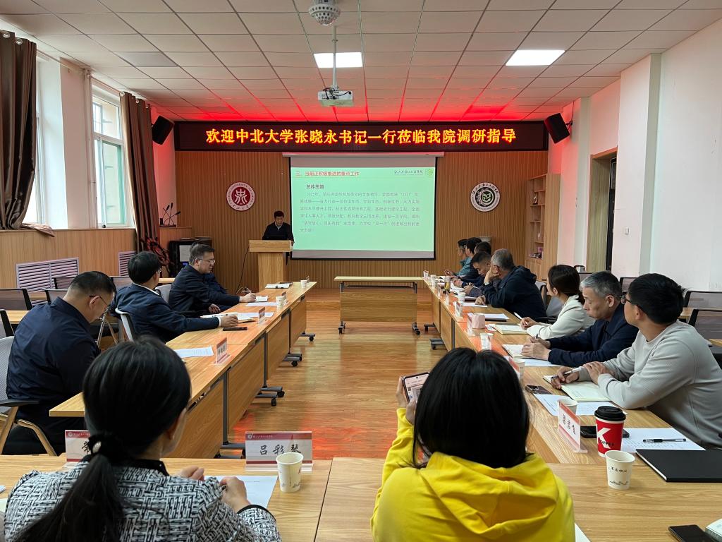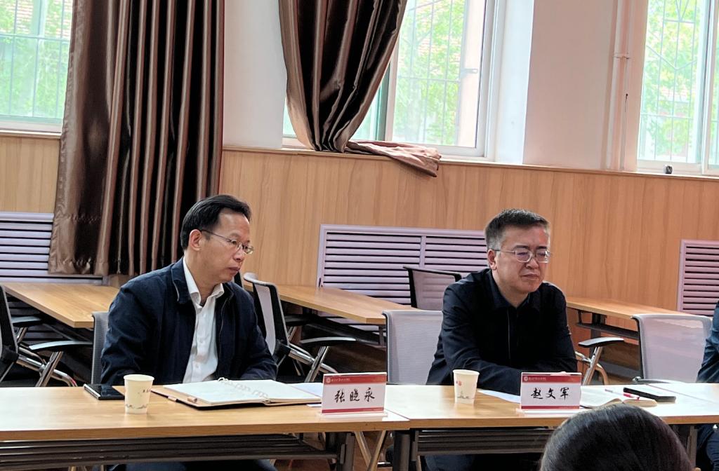 开展调研,校党委副书记赵文军、校组织部部长李俊华及机要科科长李晓杰陪同。学院领导班子成员、各科室负责人及教师代表参加了此次会议。