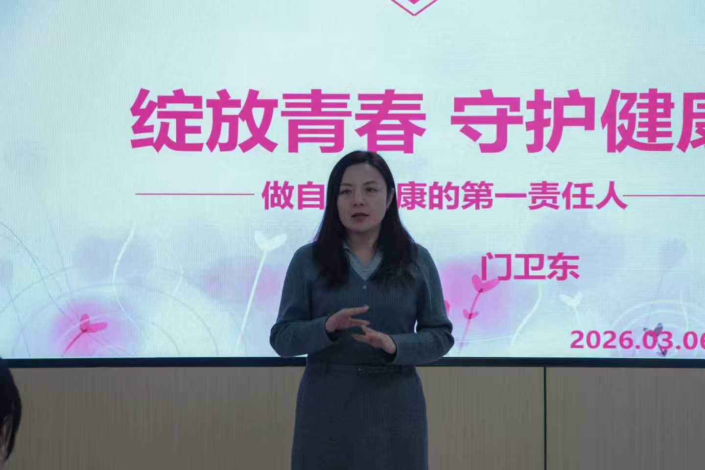 讲座最后,门主任围绕运动保健给出建议,鼓励同学们根据自身情况,选择慢跑、瑜伽、跳绳等适合自己的运动方式,坚持规律运动,实现身心共健、协同发展。她以“爱自己是终身浪漫的开始”作为寄语,勉励全体女大学生珍惜青春时光,主动学习健康知识,增强自我防护能力,做自己健康的第一责任人。
