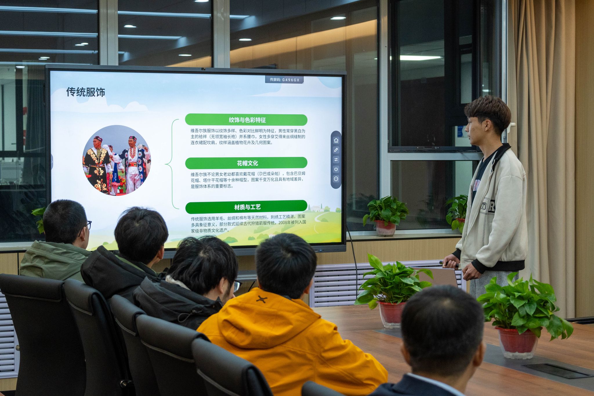 随后,高年级满族优秀学生代表王朴进结合自身成长经历,分享了在专业学习、社会实践及校园生活中的经验与感悟,为低年级同学提供了宝贵经验。2025级维吾尔族新生代表伊斯坎代尔·克然木围绕维吾尔族文化与饮食两大主题展开,展现了其中蕴含的生活智慧与民族风情。