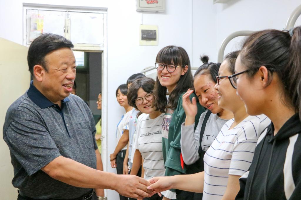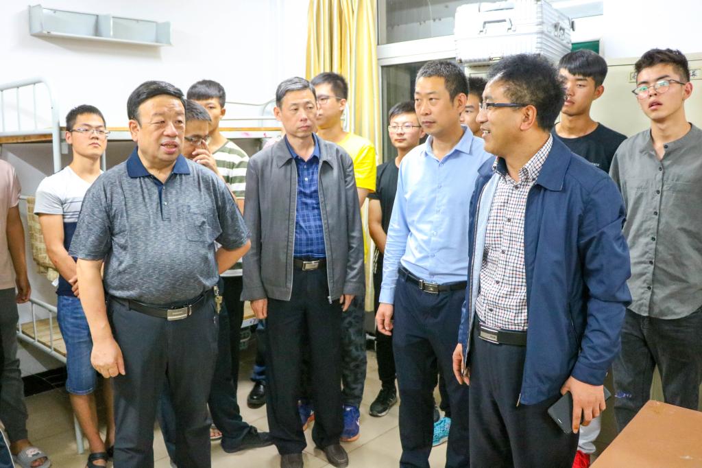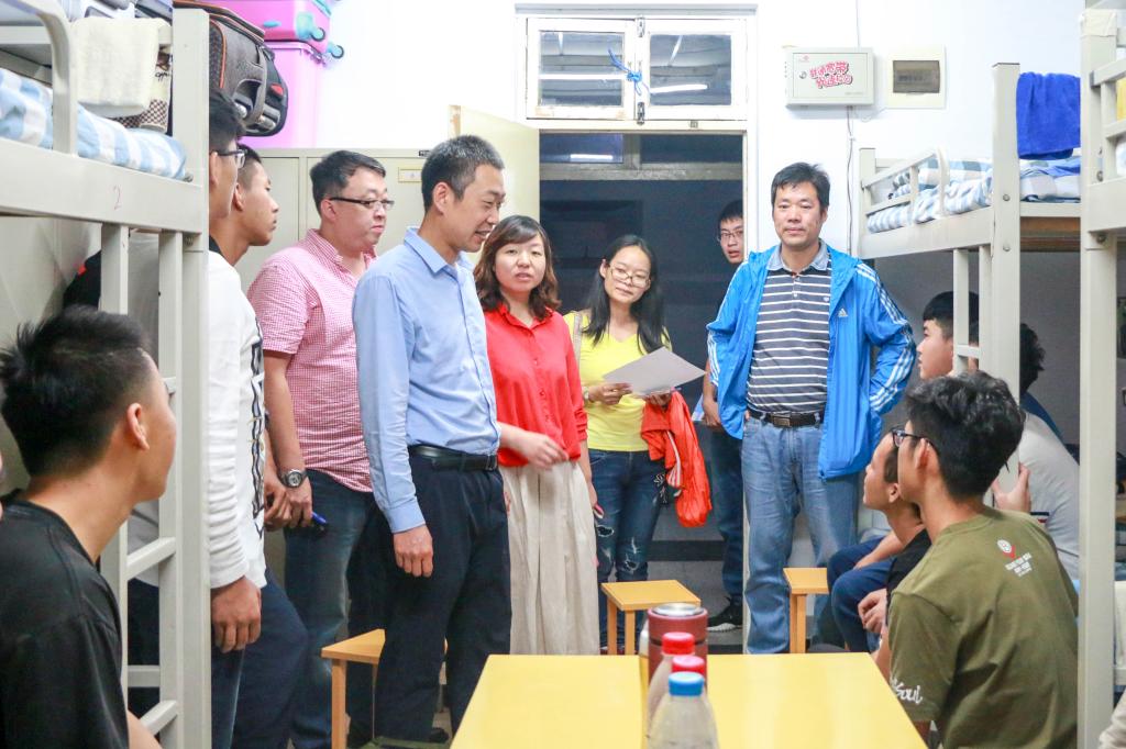 9月2日晚7:30,在能源动力工程学院领导的陪同下,校长刘有智教授深入学生宿舍慰问并看望能源动力工程学院2017级新生。陪同人员有能源动力工程学院党委书记李运芝、院长刘汉涛、副院长张翼、院党委副书记兼副院长赵永娟以及学科部主任、副主任、各科室负责人、新生班主任。