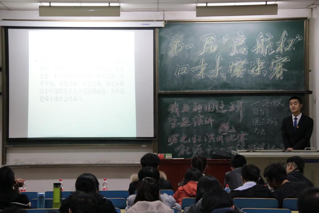 为发扬党的十九大精神,提高学院学子的综合能力。由能源动力工程学院主持人协会主办,第一届“启航杯”口才大赛决赛于11月10日晚7点在11212教室顺利举行。本次到场的嘉宾有院团委书记李晓彧及部分学生会干部。