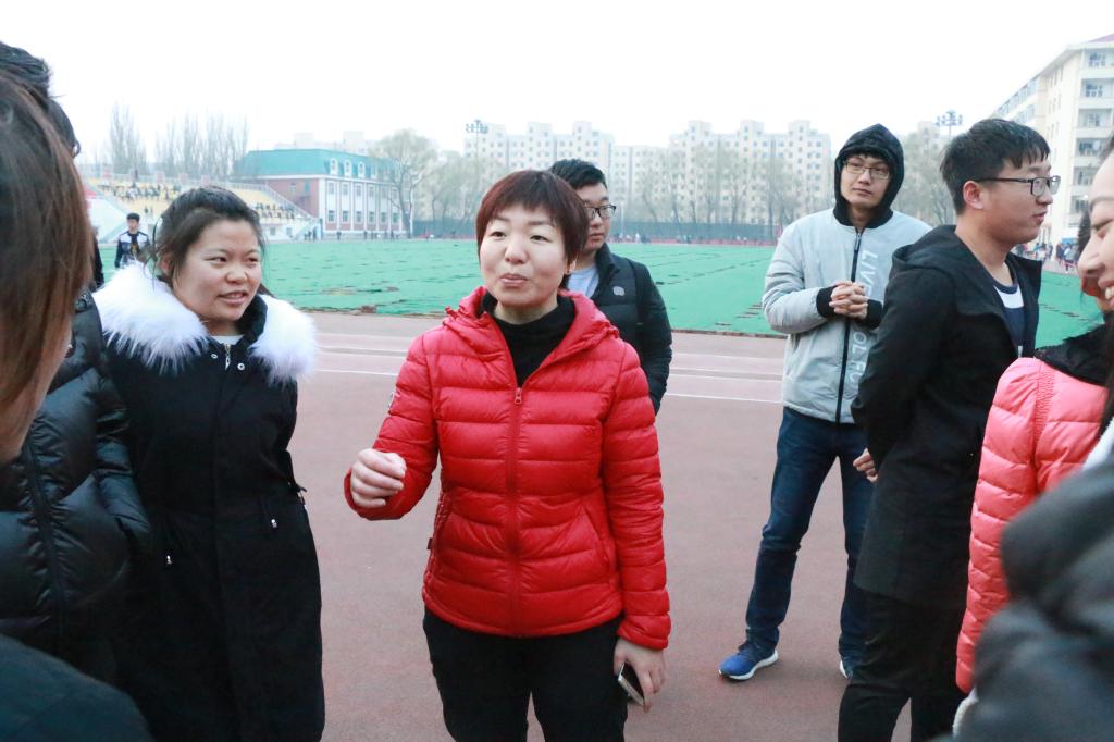 晨光熹微,赵永娟老师踏着仍未散去的夜幕来到绿茵场看望正在训练的运动员。运动员们无论是开始前的热身训练,还是高强度的体能训练,都高效率的完成,展现了坚持不懈,努力拼搏的能动学子风采。