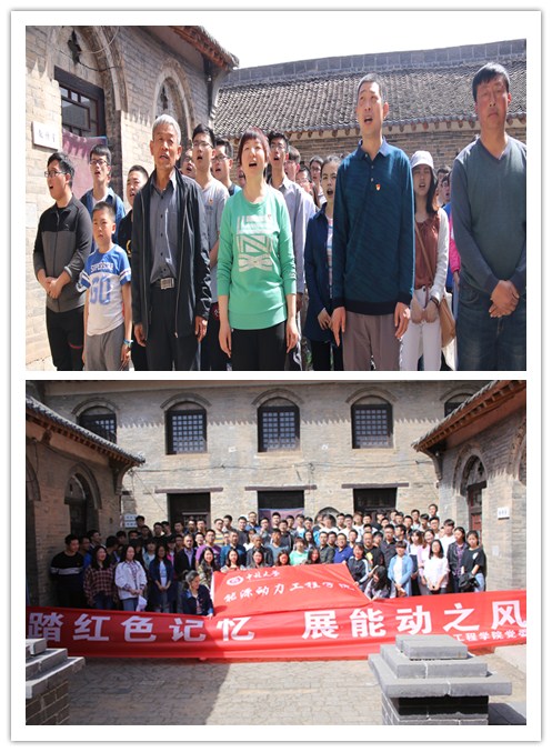 温庄旧址-太行工业学校。学校旧址艰苦的办学条件让师生们对老一辈中北人、老一辈共产党员肃然起敬,被他们艰苦创业的精神所深深打动。全体师生在学校旧址齐唱91猫先生