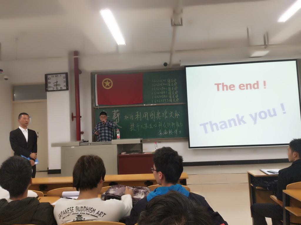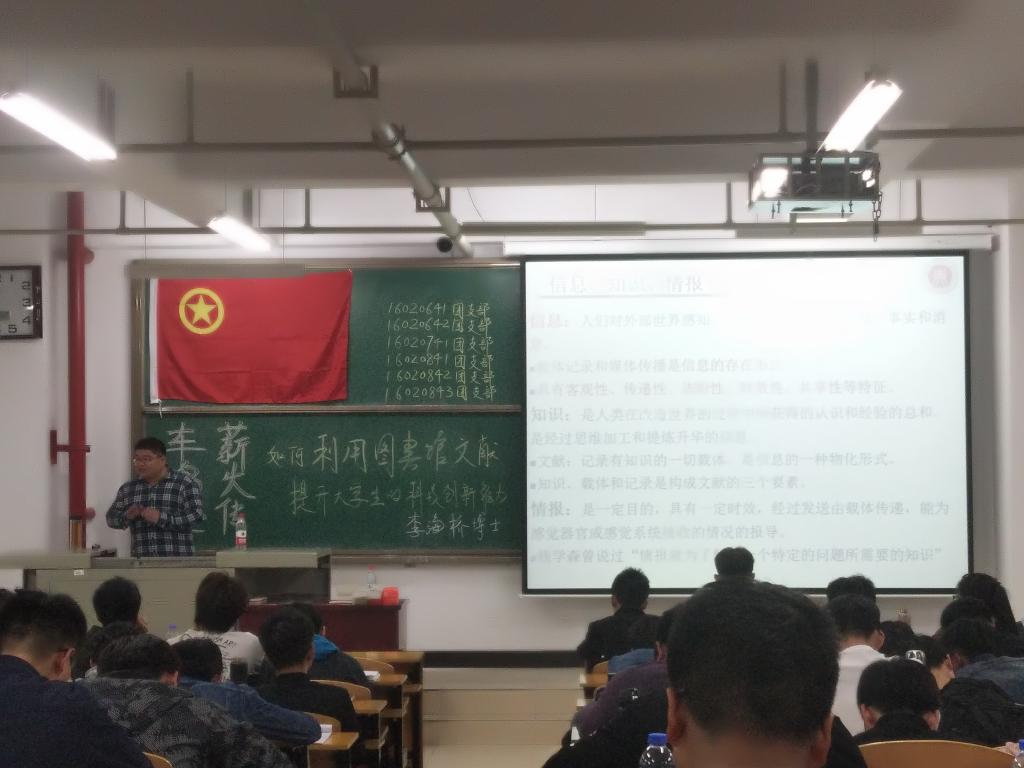 2018年3月30日晚,16020642团支部携手本学院16级其他五个团支部,相聚于15106教室。共同举办了本次的联合团日活动《车鸣起 薪火传——如何利用图书馆文献资料提高大学生的科技创新能力》讲座现场!