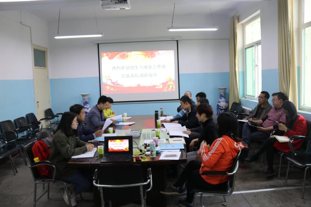 刘汉涛院长对招就处对我院招生工作的重视和支持表示感谢,并就汽服专业调整、招生计划变更以及我院招生宣传工作计划做详细说明,尤其强调学院要强化自身建设,以教学、实验平台为切入点全面开展硬件条件优化与建设。