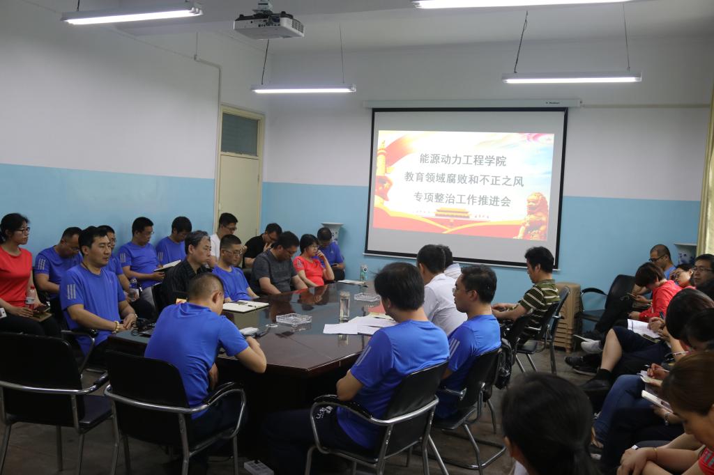 关于开展教育领域腐败和不正之风专项整治的实施方案》,落实学校关于教育领域腐败和不正之风专项整治工作推进会精神,能源动力工程学院于2018年程学院关于开展教育领域腐败和不正之风专项整治工作的推进会。学院领导班子以及全体教职员工参加了会议,会议由院长刘汉涛主持。