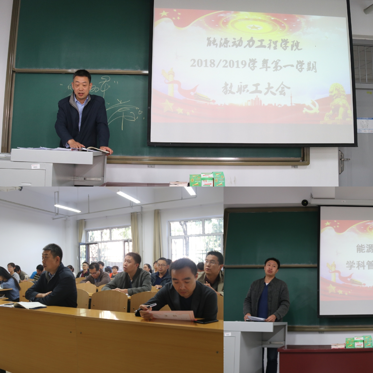 院发展现状,强调了学科平台建设、专业工程认证、课程评估等年度重点工作。院长刘汉涛老师对新学年重点工作进行了计划和部署。随后,新入职博士梁君飞、张会念分别作了入职介绍。其次,完成了动力工程及工程热物理学科管理部副主任选举工作。