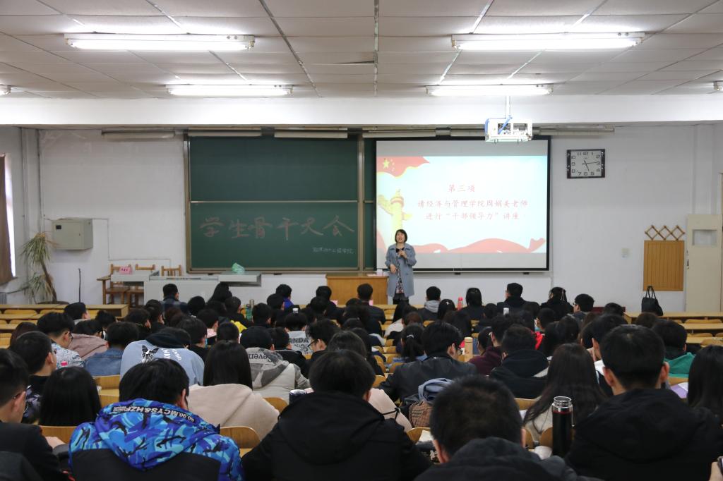 为了充分发挥团的基层组织作用和学生干部骨干的积极作用,并更好、更高效的配合完成校、院各项工作,能源动力工程学院于3月5日下午在08101教室举办了学生干部骨干大会,会议邀请经济与管理学院周娟美老师作为主讲嘉宾,院党委书记李运芝、全体辅导员、团委、学生会副部级以上学生干部、全体班长、团支书参加了本次会议。