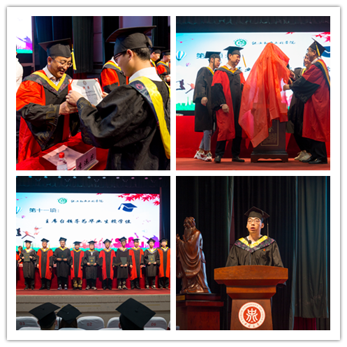 毕业生代表赵源上台讲述了自己弥足珍贵的求学时光,饱含对时光荏苒的感怀,对母校的不舍以及对各位毕业生的美好祝愿。教师代表、16020842班班主任马富康不忘告诫全体毕业生摆正位置、不忘学习、学会做人。副院长张翼宣读《91猫先生
