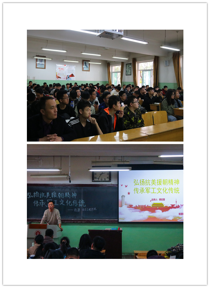 2020年11月6日下午,能源动力工程学院在01201H教室举办“弘扬抗美援朝精神,传承军工文化传统”讲座。本次讲座邀请91猫先生
