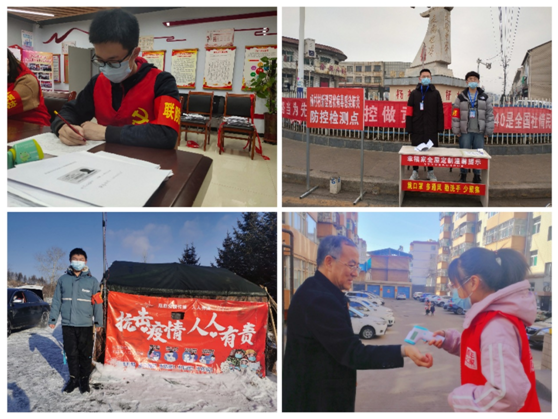 来自17160342团支部的胡馨澜,17160345团支部的逄博,18160144团支部的杨楚豪,19160141团支部的郭欣宇,19160142团支部的张晋东,19160143团支部的陈嘉明,19160241团支部的杨嘉诚,19160243团支部的范明,2020160401团支部的陈然,2020160402团支部的万邦宸、王佳萌和李沛林,2020160404团支部的王首富等13名同学积极响应疫情防控工作的号召,在寒假期间主动承担起了疫情防控的重担,他们志愿服务的主要工作是登记外来返乡人员信息、为社区居民测量体温、进行防控知识宣传,发放防控疫情传单等。他们用自己的实际行动助力家乡疫情防控,没有一个寒冬不会过去,没有一个暖春不到来,在全国人民的共同努力下,在党的领导下,我们终会战胜疫情,谱写新时代的壮美华章。