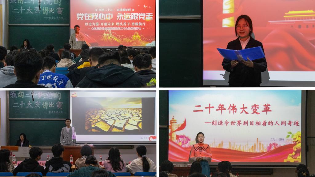 本场比赛经前期宣传,初赛环节共20名选手进入决赛环节,参赛选手紧紧围绕二十大主题展开演讲,每位选手都用最饱满的激情、最质朴的语言,将学习党的二十大精神与个人实际紧密结合,表达了自己对党的二十大精神的深刻感悟,展现了青年学子朝气蓬勃的精神风貌,更展现了新时代青年对党的忠诚和热爱。经过紧张激烈的角逐,赵楠同学摘得桂冠,牛青云、王淑楠同学斩获二等奖,吴婧、王翔、陈卫晶同学荣获三等奖。