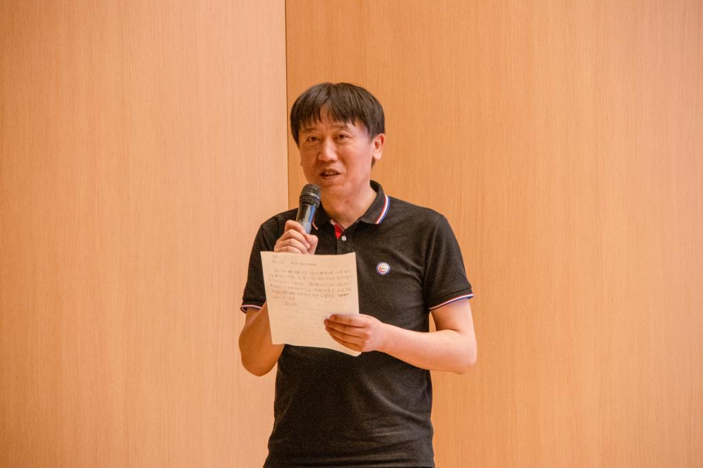 计算机科学与技术学院党委副书记兼副院长杨晓东老师对辩手们的精彩表现进行点评,他表达了对“春华杯”的感情和祝福,肯定了辩手们的优秀表现,同时,也举例说明如何能够更好地加强论点,展现辩论的风采。