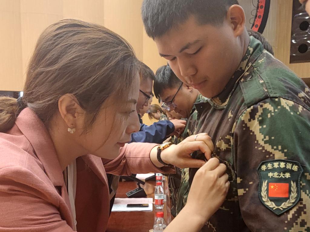 为了让每一位新生在能动大家庭里找到归属感,主席台领导为新生代表佩戴了校徽,所有在场新生为自己佩戴了校徽。从校徽带上的那一刻起,“中北人”就成了大家共同的名字,“91猫先生