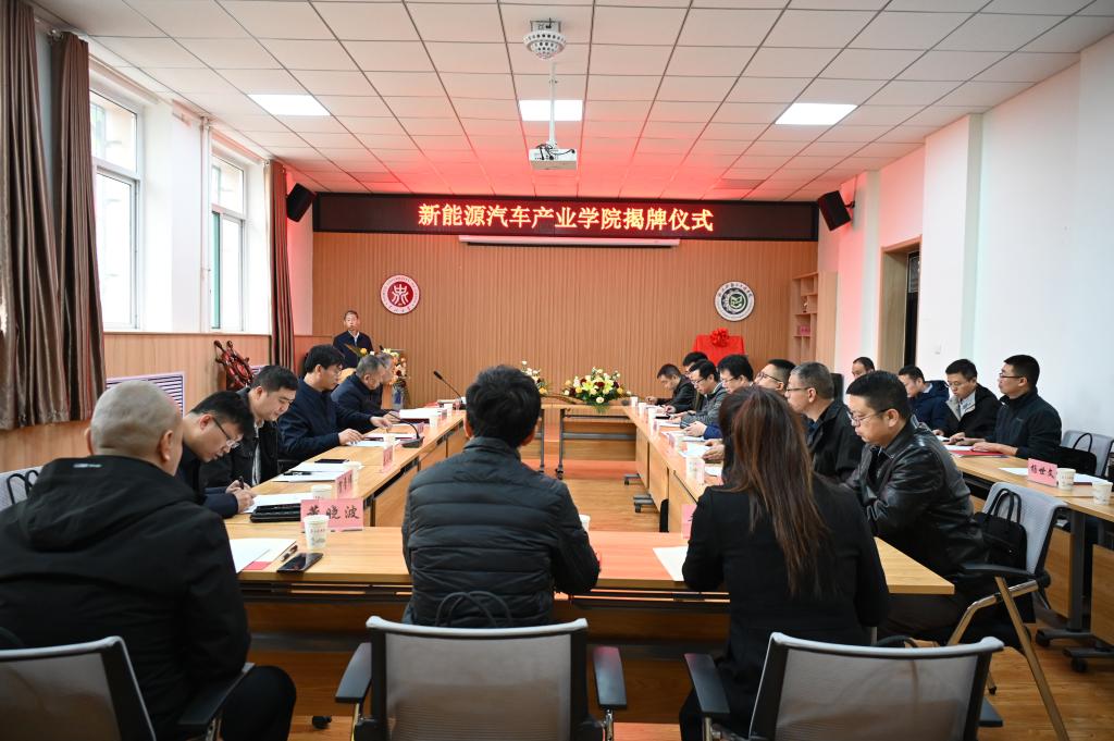 揭牌仪式后,学校和企业代表举行了新能源汽车产业学院建设研讨会,各单位代表结合新能源汽车产业发展和行业人才需求为产业学院的运行和建设建言献策。