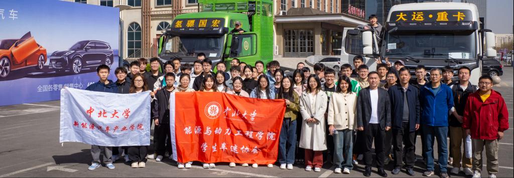 大运汽车牵引带动我省新能源汽车产业链配套企业协同发展,在我省累计引进和合作供应商40余家,包括建龙钢铁、同誉轮毂、运城创大等山西本土配套企业。同时,积极面向全球市场,建成“大运-博世”联合研发中心,与华为、阿里斑马、本特勒等世界一流企业进行战略合作。学生们积极与各大企业负责人交流,了解山西各企业的主营方向和相关就业需求、体验大运高端电动车型——远航Y6,大运新能源汽车公司靳哲飞学长(2016级车辆工程研究生)给同学们讲解大运新能源电动重卡、氢燃料重卡构造、技术特点。
