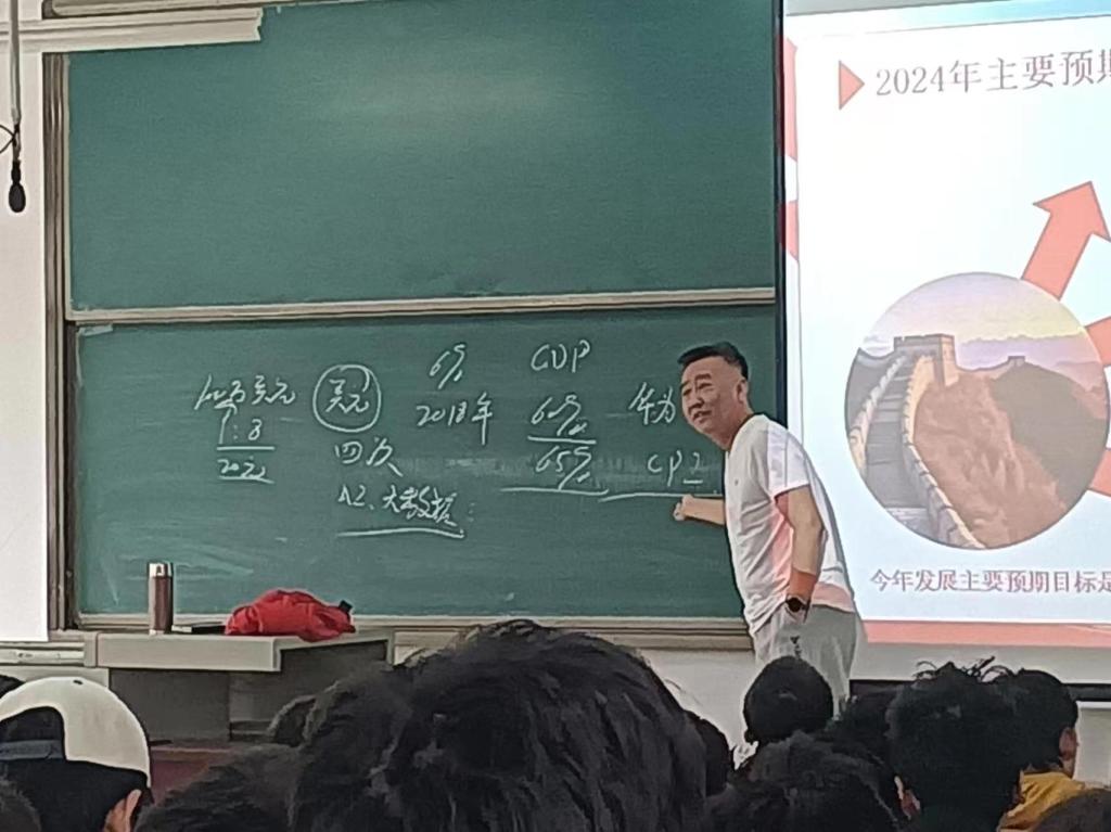 经济与管理学院党委副书记屈有明以《2024年政府工作报告十大任务解读》为题,为同学们从经济学的专有角度向同学们解读了二十大工作报告中农业、工业及商业等方面的内容,并结合身边的故事进行了细致分析和学习,引导大家进一步坚定理想信念、提升党性修养,以实际行动接受党组织的考验。
