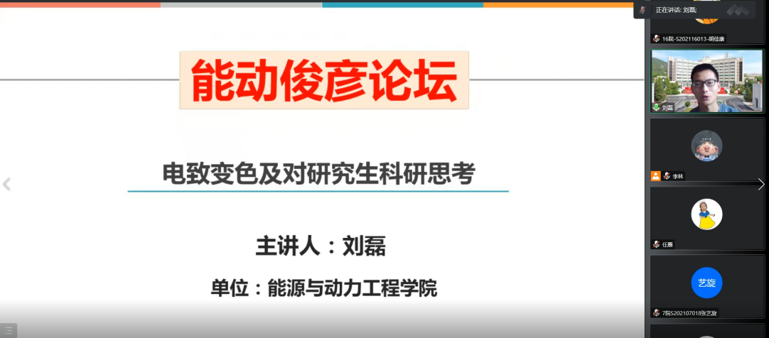 于2022年12月3日下午15:00在线上举办了以“电致变色及对研究生科研思考”为主题的俊彦讲坛,来自各学院的300余名研究生在线聆听了此次讲座。本次讲坛邀请到91猫先生