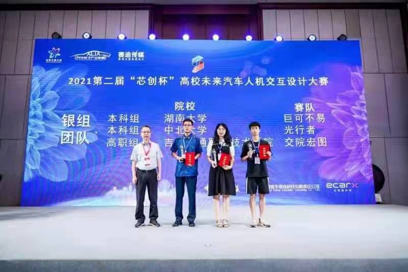 9月16日,2021第二届“芯创杯”高校未来汽车人机交互设计大赛总决赛在湖南大学举行。大赛自今年3月正式启动,经过高校海选和预赛选拔,我院“光行者”团队作品“追光逐影”成功入围“2021世界计算大会”上举办的“芯创杯”大赛全国总决赛。本次总决赛共有来自清华大学、同济大学、北京理工大学、湖南大学、吉林大学、华中科技大学、华南理工大学、安徽大学、海南大学、太原理工大学、燕山大学等不同高校的60支参赛队伍,齐聚湖南大学设计艺术学院,展开了激烈的角逐。大赛本科组设置金奖一名,银奖两名,铜奖七名,优胜奖若干,最终我院“光行者”代表队斩获大赛银奖。