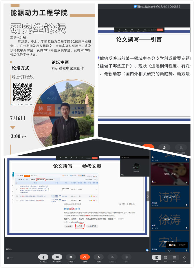 7月6日下午,能源动力工程学院举办了一期线上研究生论坛,学院50余名研究生在线积极参与。本次论坛的主讲人为我院动力工程及工程热物理专业17级硕士研究生黄龙龙同学。